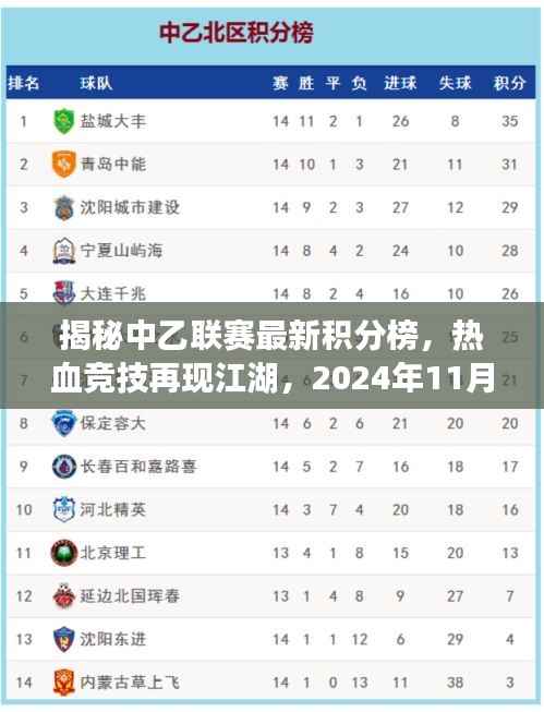 揭秘中乙联赛最新积分榜,热血竞技再现江湖,2024年11月14日最新积分更新