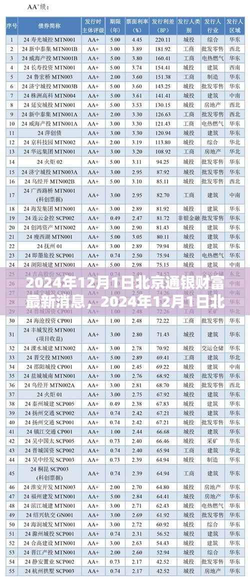 金融市场日新月异,信息时代的到来使得我们获取信息的速度越来越快,在这个充满变化的时代,如何把握金融市场的脉搏,成为投资者们关注的焦点,本文将为您带来2024年12月1日北京通银财富的最新消息,并深入分析其背后的金融趋势,助您洞悉未来投资方向。